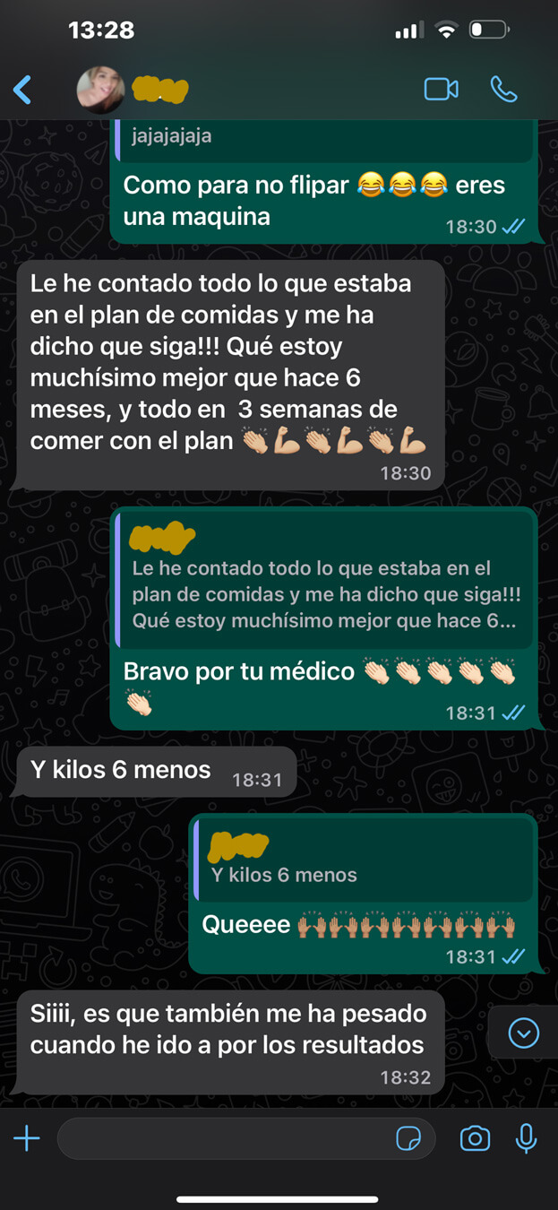 "Descubrí el programa de Iria a través de un video de TikTok y ha sido una bendición en mi vida. En solo 5 semanas, he perdido 15 kilos, ya no tengo hipotiroidismo ni hígado graso, mis últimos exámenes salieron perfectos. Ahora me siento llena de energía por que antes me dormía en cualquier lugar. Lo recomiendo mucho."